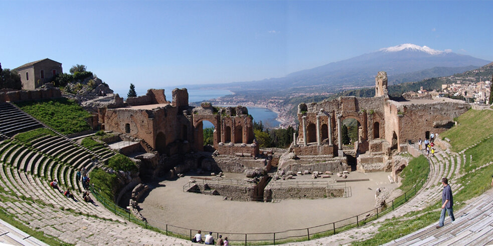 Sospesa tra le rocce ed il mare Taormina, grazie alle sue bellezze naturalistiche, la sua splendida vista sul vulcano Etna e sul golfo di Isola Bella, è la meta mondana per eccellenza in Sicilia.